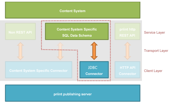 JDBC Connector is a publishing server plug-in to connect publishing hub to arbitrary SQL databases as content sources. The JdbcConnector acts as a JDBC client to the target database using native queries that can be configured in a configuration file. Query results will be mapped into publishing hub entity data objects.