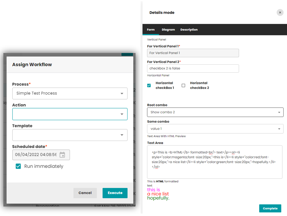 1. User Input Form Method - used when the user interacts with the process via form. They can be used for Start Events and User Tasks and are analogic to priint:ui kit classes for dynamic UI. 2. Automation Method - executed via workers by the Camunda server. They can be used for Service Tasks to execute specific methods on Documents, Folders and Publications. Automation Methods are analogic to previous workflow methods. This kind of method does not have any access to renderer.