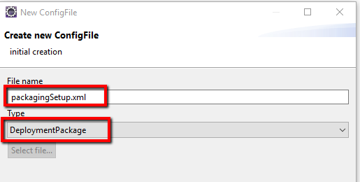 To create a deployment package which includes a set of files which should be deployed, the user has to create a config file for the DeploymentManager plugin. There is no wizard which supports the creation of such a file in the first version. The user must use the standard ISON functionality of the Repository Explorer to create a config file.