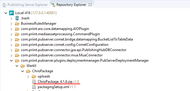 To create a package, the user must create a folder in the repository folder of the Deployment Manager plugin. This folder includes other folders which contain uploaded files like Publishing Server plugin, libraries or import scripts. This is a standard functionality of ISON Repository Explorer.