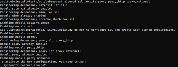 The output of the a2enmod command will look like this. The SSL module has some dependencies that will be activated automatically.