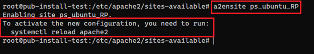Now that we have the configuration file in the right place, we have to activate this configuration. For this, we use an Apache terminal command: