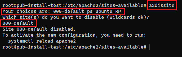 But before that we will remove the standard config from the Apache because it is not needed when using our configuration. For this we use the command a2dissite: