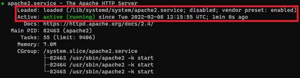 The output of the command above will look like this if the Apache web server is loaded and active.