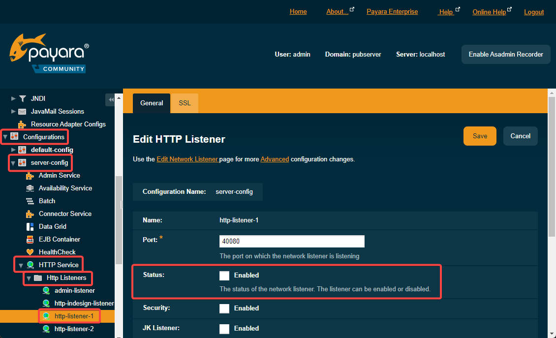 12.1.4.1 Disabling unsecure http-listener-1 in application server