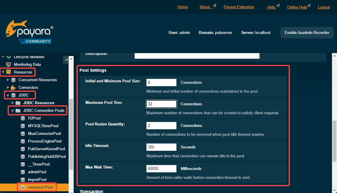 Update the maximum pool size of the JDBC Connection __TimerPool.