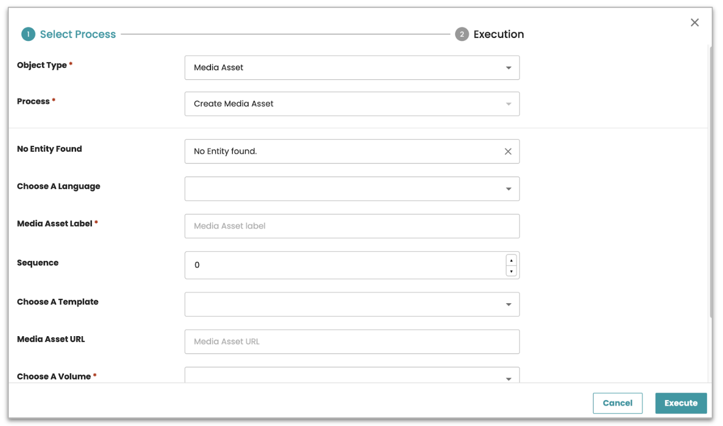 Dynamic Form: After selecting the process, the form will display the relevant fields for managing the selected content type. These fields include available processes defined and assigned to the selected Object Type, such as processes for creating, editing, or deleting buckets.