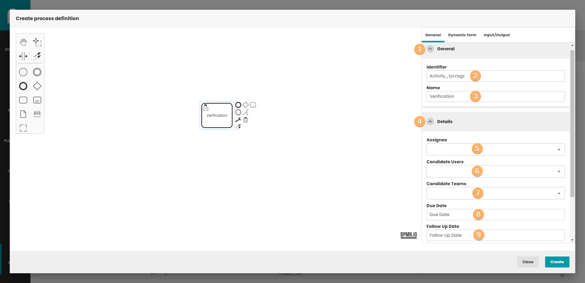 - Canvas with process definition. You can use When you click on this field, you can edit basic information about process definition.