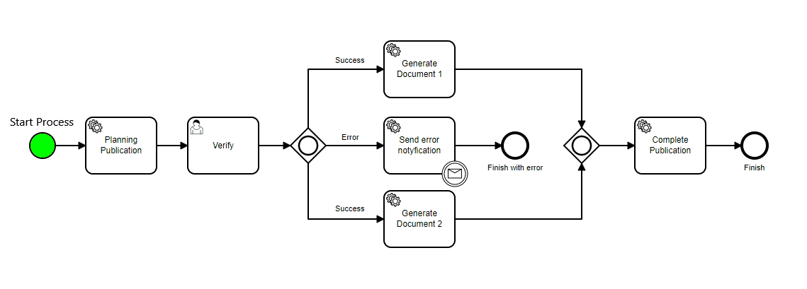 Gateways control the flow of tokens in the process. Enable you to make modeling decisions based on data and events, as well as fork / join concurrency. There are 5 types of gates in bpmn. All types are described below.
