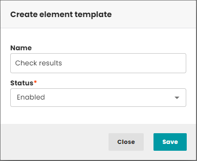 In the next step you will be asked to provide a name for the template and specify the status (enabled/disabled). When everything is filled in, click the "Save" button. After that, all settings will be saved, and you will be able to find the template itself in the "Element templates" tab.