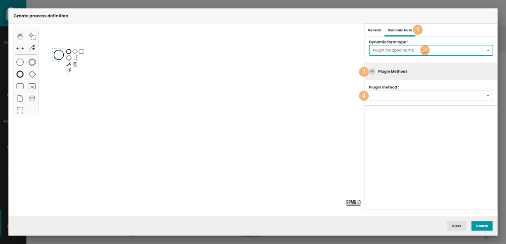 A tab with a dynamic form is a place where you create or indicate a ready form that is to be displayed to the user during the process. You can create a form statically by selecting type "form" or dynamically using plugin method name.
