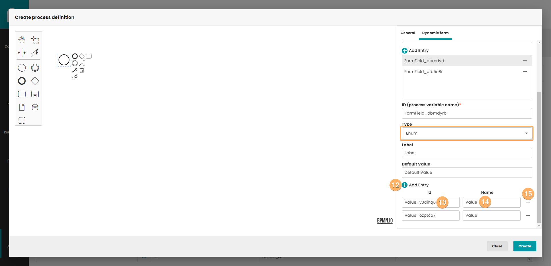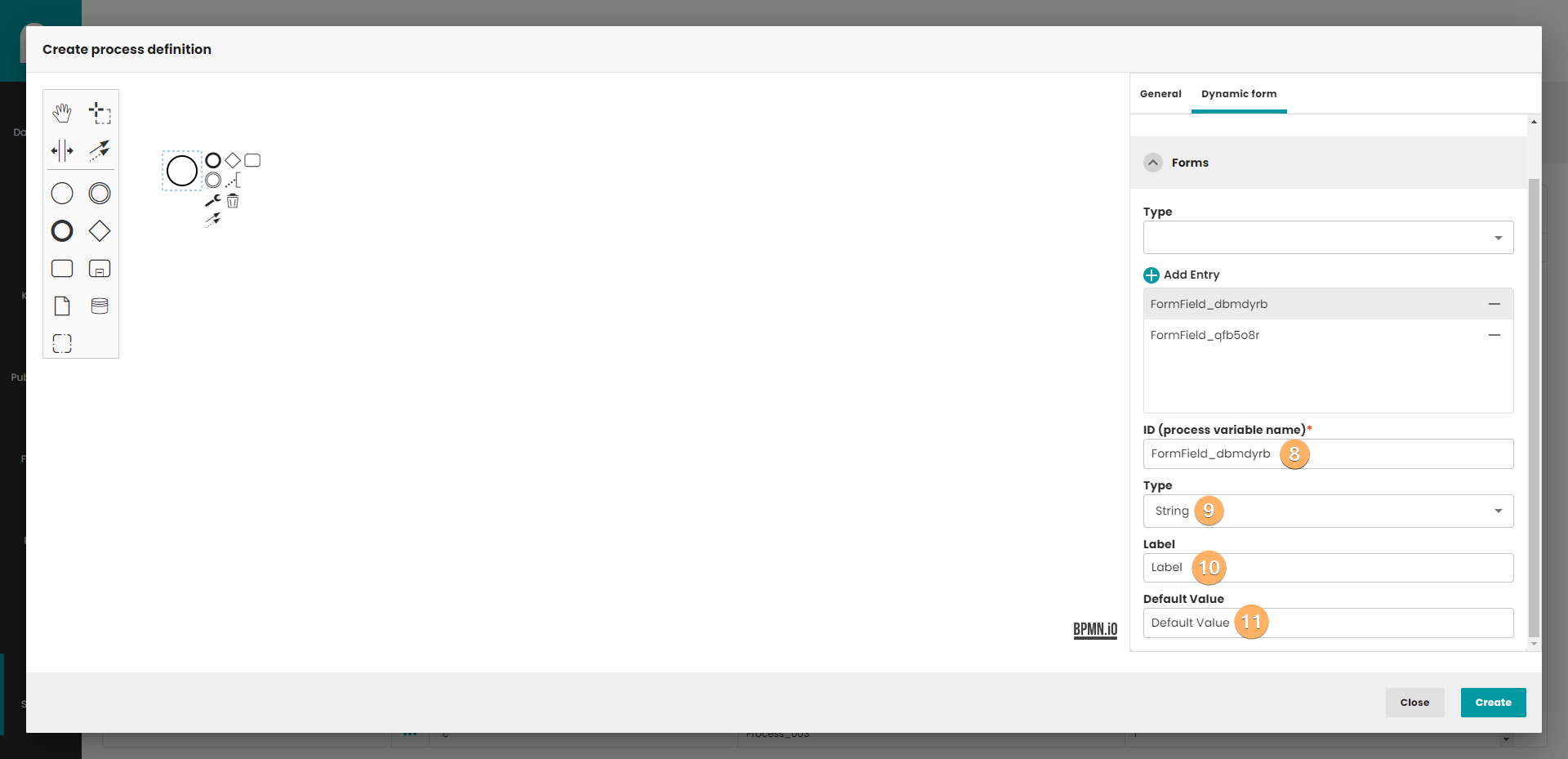 - Process variable name. This field identifies the field in form. Important! The name must be unique and not empty within the form.