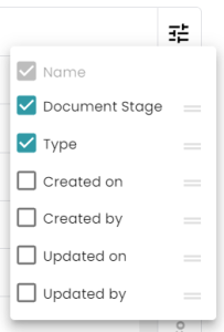 The column checkbox controls whether the column is displayed or not. The order of the columns can be changed by drag and drop in this list. If the grid has columns which must not be hidden, they are shown in light grey and their checkbox cannot be changed.